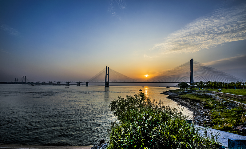 荊州長江公路大橋位于長江中游荊江河段,屬207國道跨長江的重要橋梁。大橋全長4177.6米,在同類橋梁中位列亞洲第一,世界第二。公司承建主橋(200 500 200)m雙塔雙索面漂浮體系預應力砼斜拉橋和(93 150 93)m預應力砼連續(xù)箱梁 22*20m預應力砼空心板梁,H型主塔高139.15米,塔基礎為22根孔徑2.5米鉆孔群樁,主塔承臺直徑33米、高6.25米,砼方量達5346.6立方。大橋結構復雜、施工難度大,全橋構造包攬國際國內大跨徑度橋梁多種形式,被國內橋梁專家譽為“中國橋梁建設的博物館”。2002年建成。