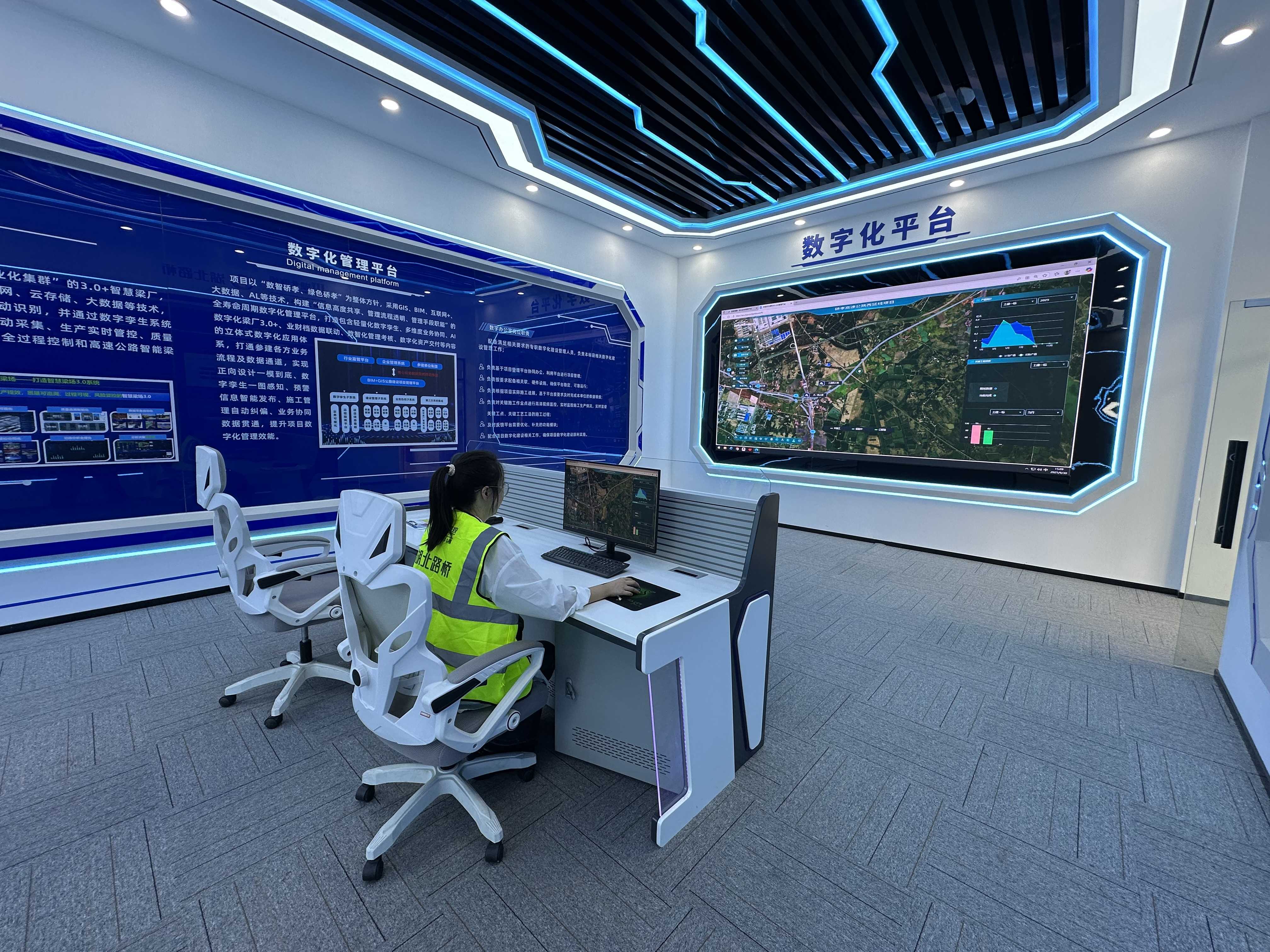 在項目部的數(shù)字化辦公室,電子屏幕上,整個項目的三維BIM模型清晰可見。項目總工徐耀輕點鼠標(biāo),即可隨意調(diào)取任一工點的實時畫面、進(jìn)度數(shù)據(jù)、質(zhì)量檢測報告等信息。