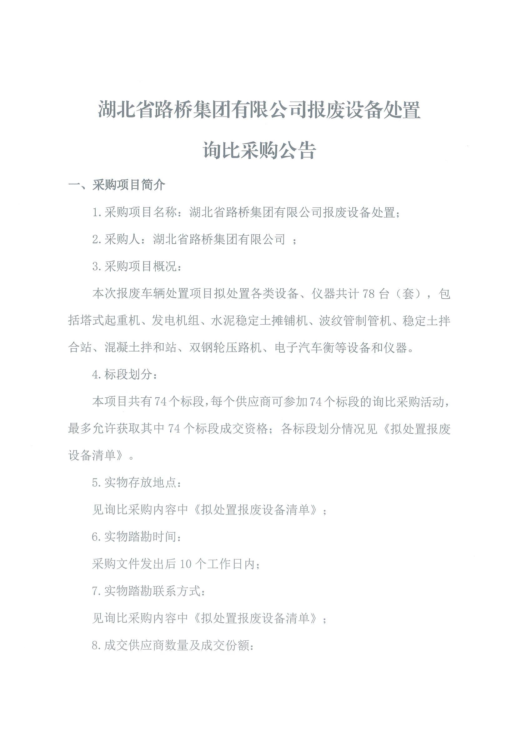湖北省路橋集團(tuán)有限公司報(bào)廢設(shè)備處置詢比采購公告